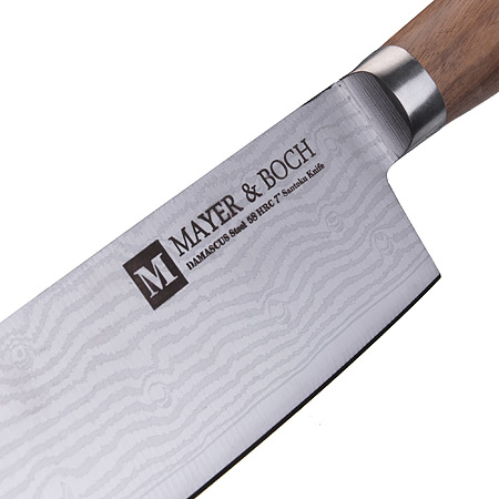 Нож MAYER & BOCH изготовлен из высококачественной стали, обеспечивающей высокие режущие свойства кромки клинка. Нож имеет острое лезвие с ровной поверхностью и выверенным углом заточки, а также имеет специальную закалку металла для повышения прочности. Поверхность клинка легко моется, не впитывает и не «передает» запахи пищи при нарезке продуктов. Этот нож идеально подойдет для нарезки крупных твердых овощей и фруктов, разделки курицы, крупной рыбы или мяса, широкой боковой стороной лезвия удобно давить чеснок. Тщательно разработанный дизайн рукоятки и ее качество позволяют ножу удобно располагаться в руке. Нож изготовлен из экологически чистых материалов, легок и прост в эксплуатации и уходе.