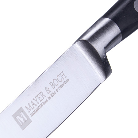 Нож MAYER & BOCH с лезвием из высококачественной нержавеющей стали станет незаменимым помощником на Вашей кухне. Сечение ножа — клинообразно, что позволяет режущей кромке клинка быть продолжительное время острой. Поверхность клинка легко моется, не впитывает и не «передает» запахи пищи при нарезке различных продуктов. Эргономичная рукоятка ножа удобно ложится в ладонь, обеспечивая безопасную работу, комфортное положение в руке, надежный захват и не дает ножу скользить при использовании.