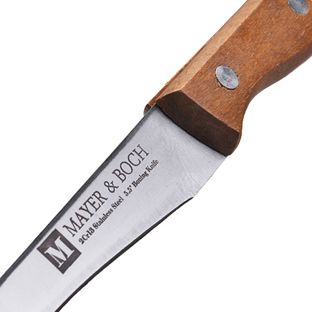 Нож универсальный 14см MAYER & BOCH Classic из нержавеющей стали с деревянной ручкой MAYER & BOCH M&B Knives Нож изготовлен из высококачественной легированной стали, обеспечивающей высокие режущие свойства кромки клинка. Нож имеет острое лезвие с ровной поверхностью и выверенным углом заточки, а также имеет специальную закалку металла для повышения прочности. Поверхность клинка легко моется, не впитывает и не «передает» запахи пищи при нарезке продуктов.