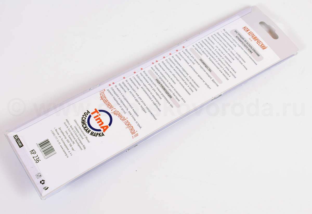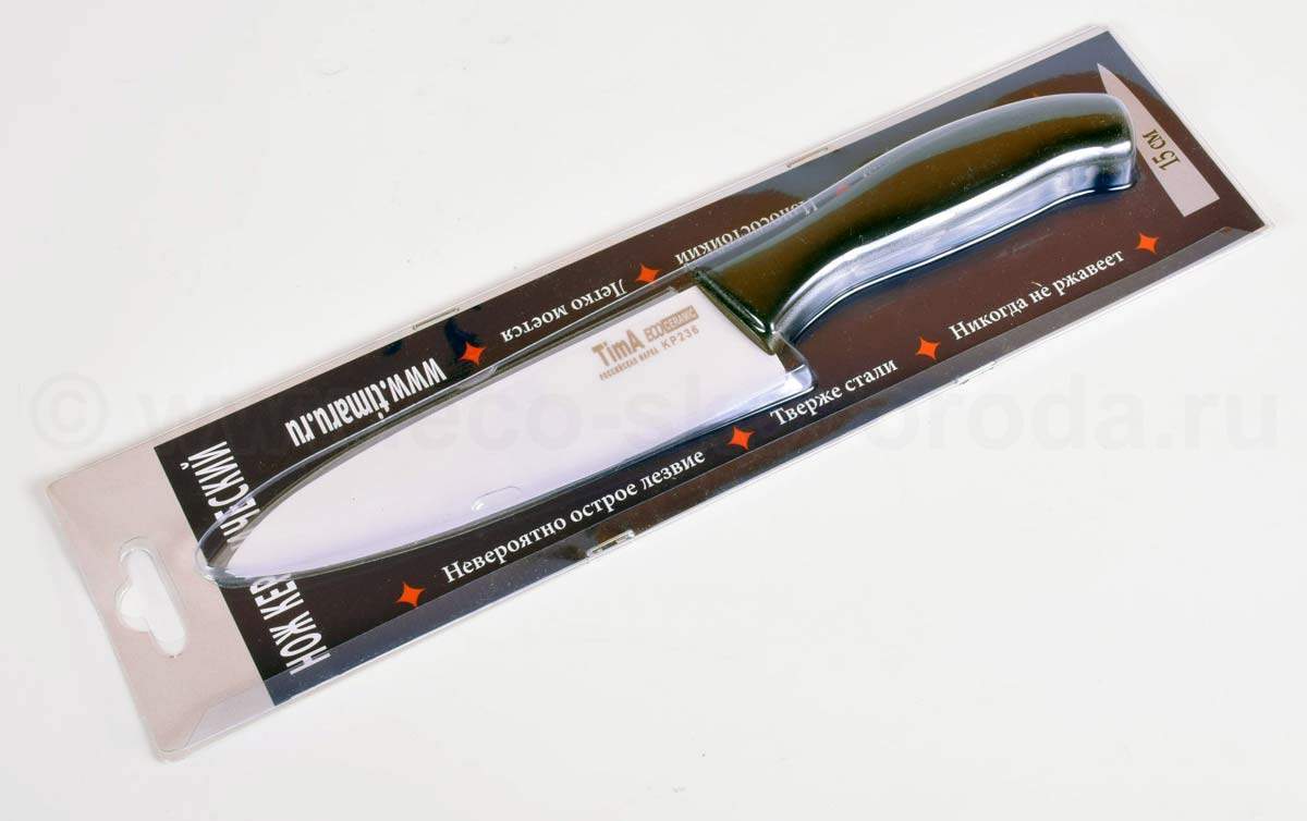 Нож керамический 15см TIMA Pro Tima Pro Ножи керамические TIMA выполнены из циркониевой керамики. Циркониевая керамика – изобретение российских ученых, по своим свойствам очень близка к естественным алмазам. Керамика – это чистая и здоровая альтернатива. В отличие от стальных ножей, керамические ножи не переносят ионы металла в пищу, не разрушают от кислот и жиров в овощах и фруктах.