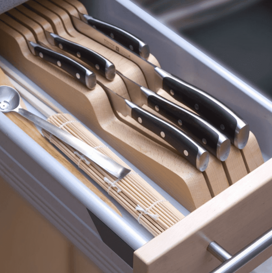 Ножи Wuesthof изготовлены из нержавеющей хромовой стали марки X50CrMoV15. В сплав входят молибден и ванадий, который придают прочность. Содержание углерода дает высокую твердость лезвия. Присутствие в составе хрома дает высокую стойкость к коррозии.