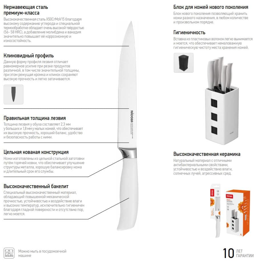 • 10 лет гарантии на ножи серии Blanca от NADOBA!
