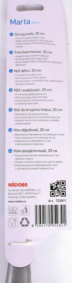 Нож разделочный, 20см, NADOBA Marta из нержавеющей стали, Чехия Nadoba Marta Чешская компания NADOBA является эксклюзивным представителем в Восточной Европе компании Kurcharske nacini NADOBA, s.r.o. Компания NADOBA - это производитель высококачественных кухонных товаров для профессионального и домашнего использования. Компания NADOBA использует только экологичные материалы, соответствующие строгим европейским