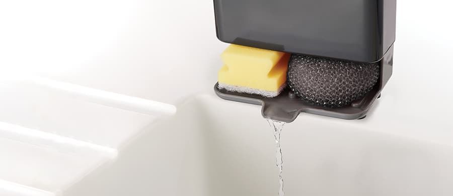 - Органайзер экономит место, а открытое основание и слив в раковину обеспечивают чистоту и гигиеничность использования.