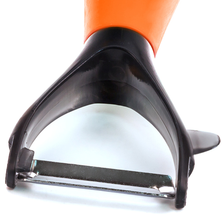 На ноже находится специальный зубец, который позволяет удалять «глазки» с картофеля. Удобная эргономичная ручка овощечистки обеспечивает удобный захват и ваши руки не устанут от долгой работы. Легко и просто моется.