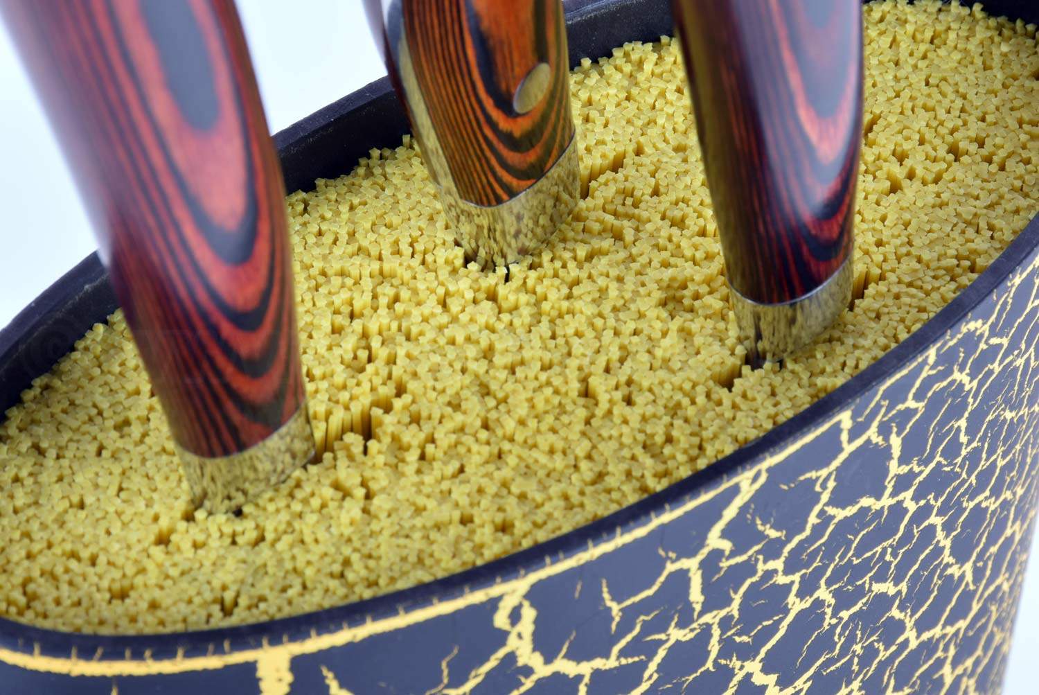 Благодаря оригинальному устройству подставки в ней можно хранить ножи любых размеров: от самых маленьких до ножей типа "шеф", а также секаторы и ножницы. Все просто! Есть подставка, которая наполнена специальной соломкой из экологически чистого материала. Благодаря ей ножи не соприкасаются друг с другом и они хорошо держатся на месте. Соломку при необходимости можно легко извлечь из контейнера и промыть, чтобы не образовывались микробы. Промывать ее можно как вручную, так и в посудомоечной машине, что значительно облегчает процесс.
