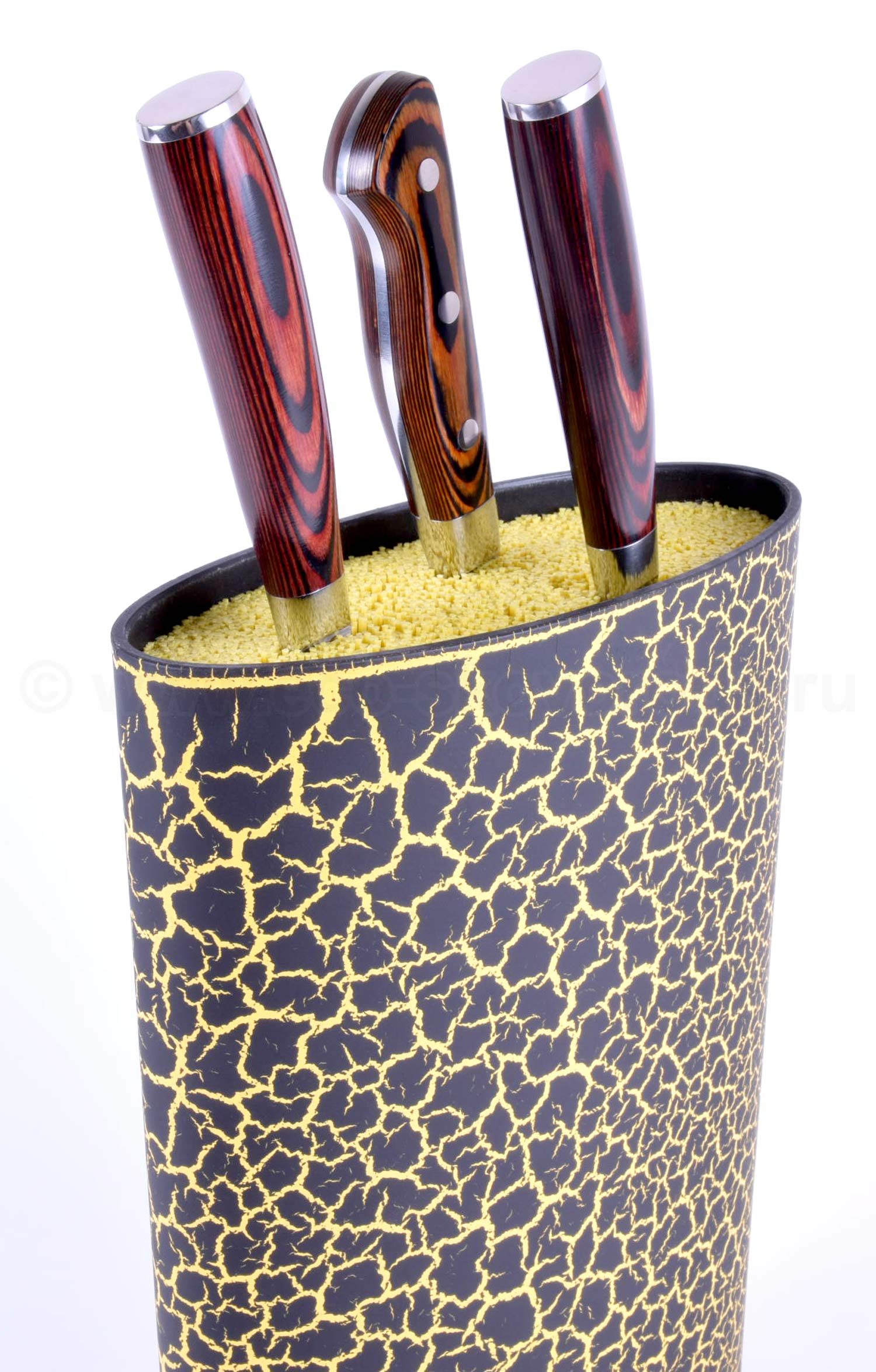 Подставки могут быть самой разнообразной формы, размера и расцветки. В зависимости от размера и формы количество хранимых в ней ножей различно. Благодаря тому, что материалом при производстве подставки может быть что угодно - от дерева до стекла, то подобрать именно ту, которая впишется в интерьер Вашей кухни не составит труда.