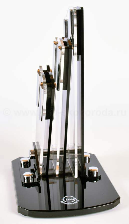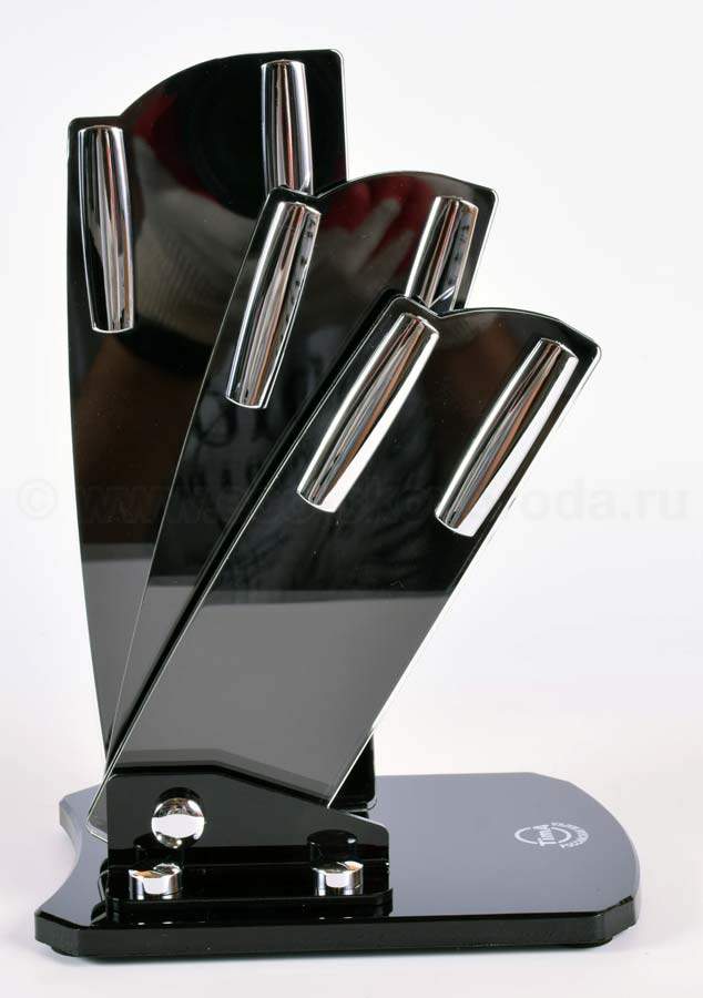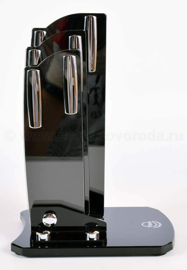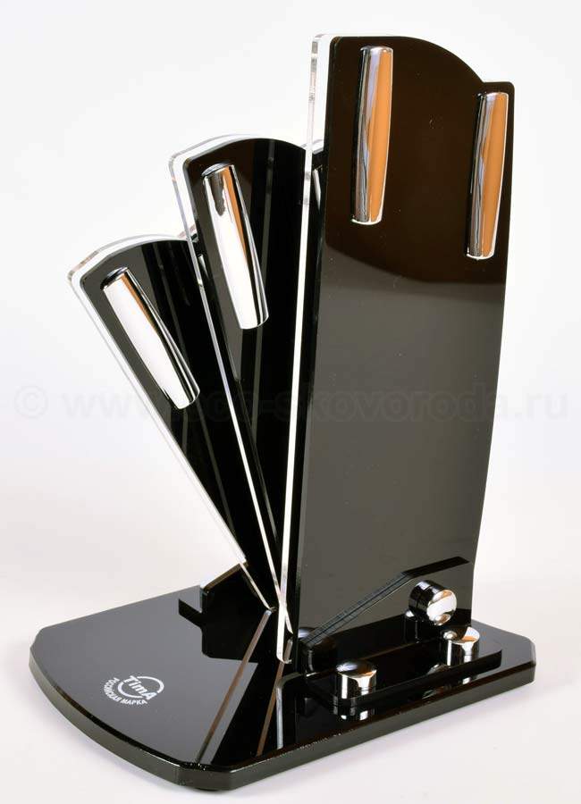 Подставка TIMA для 3-х ножей подходит для маленьких, средних и больших ножей. Подставка сделана из пластика. Отверстия для ножей сделаны под углом для более легкого и комфортного проникновения ножей.