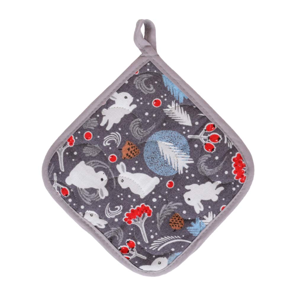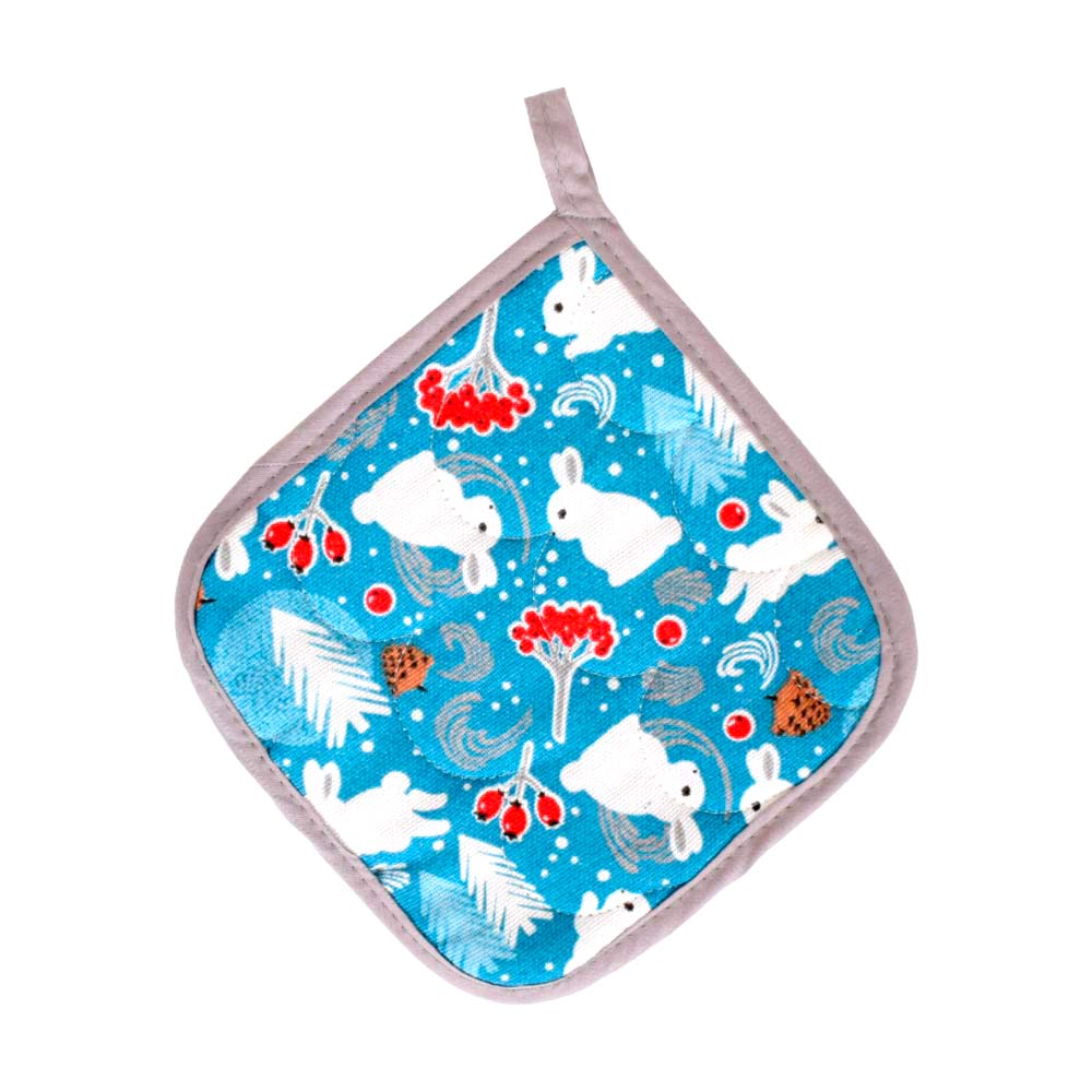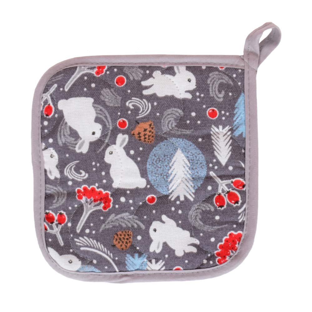 Прихватка для кухни 18х18см из хлопка МУЛЬТИДОМ Зайцы в лесу цвет по наличию, Россия