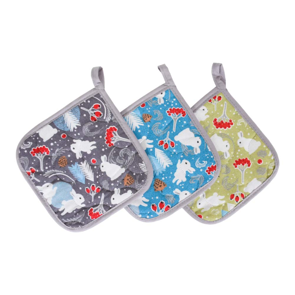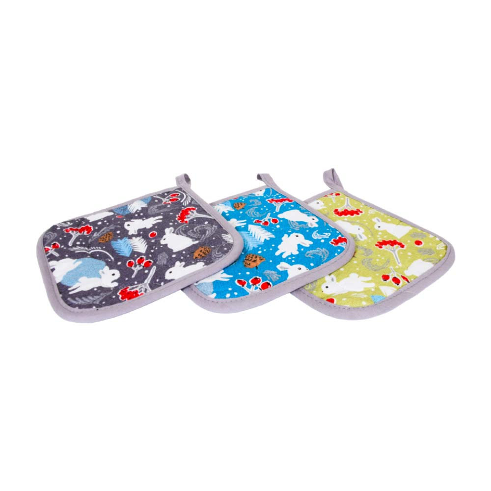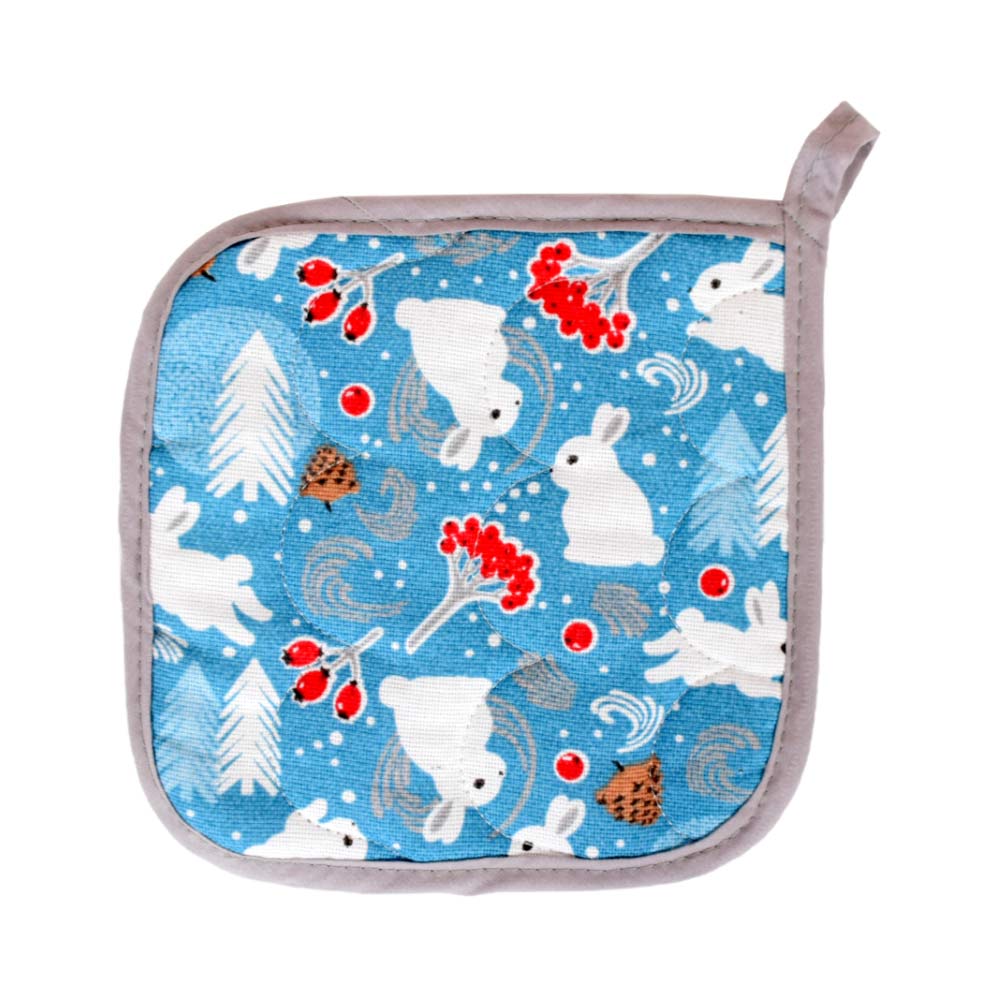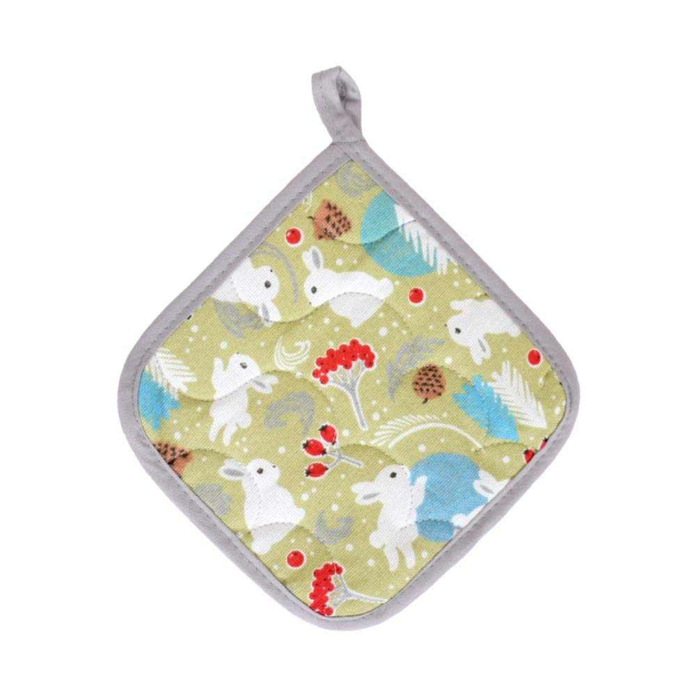 Прихватка для кухни 18х18см из хлопка МУЛЬТИДОМ Зайцы в лесу цвет по наличию, Россия