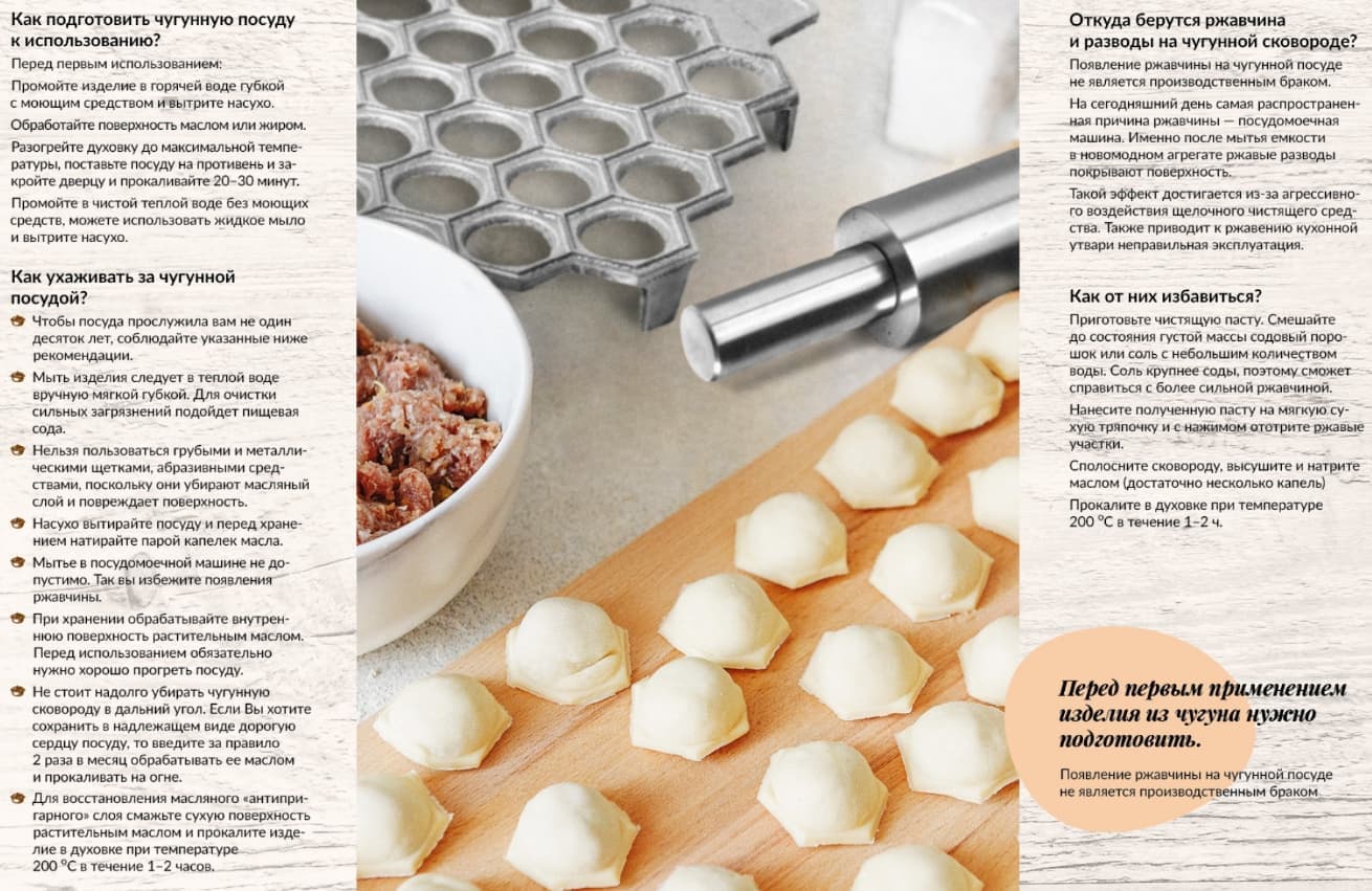 - Появление ржавчины на чугунной посуде не является производственным браком;