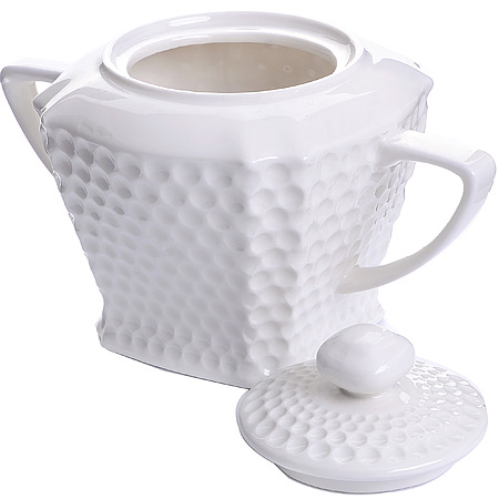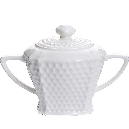 Сахарница изготовлена из фарфора высокого качества. Сахарница с двумя ручками, закрывается удобной крышкой. Такая сахарница понравится любителям оригинального дизайна и станет неотъемлемым атрибутом чаепития. Не применять абразивные моющие средства.