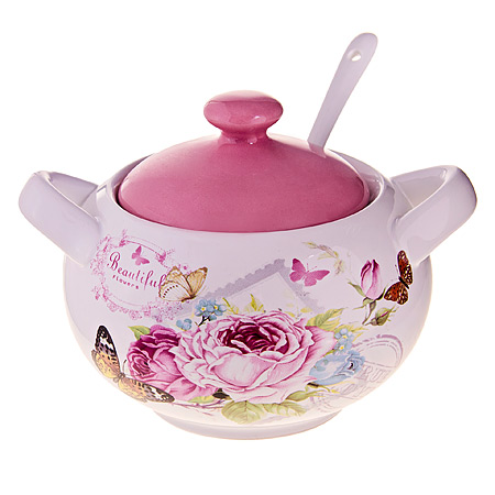 Сахарница с ложкой 375мл LORAINE Розы доломит Сахарница с ложкой 375мл LORAINE Розы доломит Сахарница с ложкой 375мл LORAINE Розы доломит