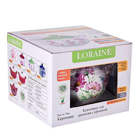 Сахарница с ложкой 375мл LORAINE Цветы доломит LORAINE Банки для сыпучих LR Сахарница LORAINE изготовлена из прочной доломитовой  керамики высокого качества c цветным рисунком. Сахарница закрывается удобной крышкой. В комплекте идет небольшая керамическая ложечка. Такая сахарница понравится любителям яркого оригинального дизайна и станет неотъемлемым атрибутом чаепития. Предметы набора можно мыть в посудомоечной машине.