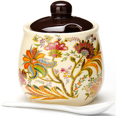 Сахарница LORAINE изготовлена из доломитовой керамики высокого качества и украшена красивым рисунком. Сахарница закрывается удобной крышкой. В комплекте — небольшая керамическая ложечка. Такая сахарница понравится любителям яркого оригинального дизайна и станет неотъемлемым атрибутом чаепития. Сахарница упакована в индивидуальную коробку. Подходит для мытья в посудомоечной машине. Объем: 380 мл.