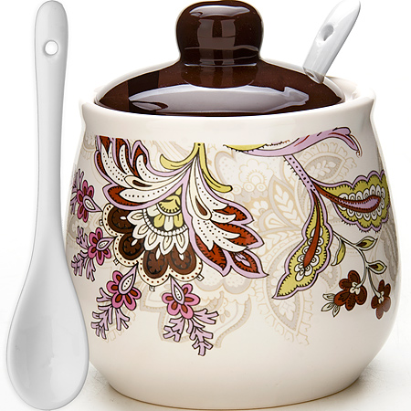 Сахарница изготовлена из доломитовой керамики высокого качества и украшена красивым рисунком. Сахарница закрывается удобной крышкой. В комплекте — небольшая керамическая ложечка. Такая сахарница понравится любителям яркого оригинального дизайна и станет неотъемлемым атрибутом чаепития. Сахарница упакована в индивидуальную коробку. Объем: 380 мл.