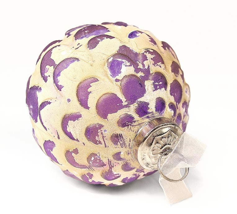 Стеклянный шарик на елку, произведенный вручную с применением крафтовой техники нанесения извести на стекло и последующей полировки