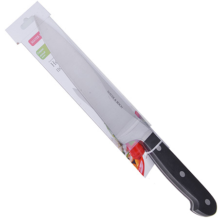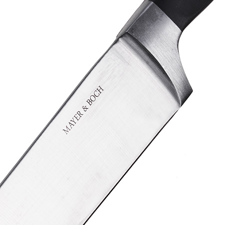 Шеф нож поварской кованный 20см MAYER & BOCH из нержавеющей стали MAYER & BOCH M&B Knives Нож MAYER & BOCH с лезвием из высококачественной нержавеющей стали станет незаменимым помощником на Вашей кухне. Сечение ножа — клинообразно, что позволяет режущей кромке клинка быть продолжительное время острой. Поверхность клинка легко моется, не впитывает и не «передает» запахи пищи при нарезке различных продуктов. Эргономичная рукоятка ножа