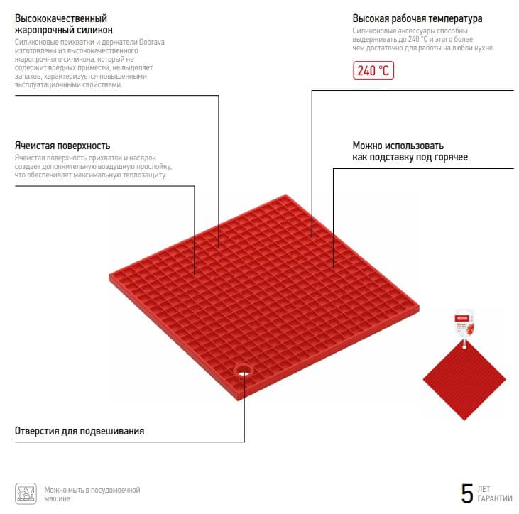 • Серия Dobrava от NADOBA включает в себя прихватки и держатели для всех видов посуды. Любая хозяйка найдет аксессуар, подходящий именно для ее нужд.