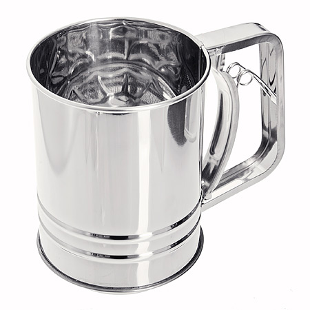 Прочная сетка и корпус сита-кружки выполнены из нержавеющей стали. Изделие отличается прочностью и долговечностью, не подвергается коррозии и отвечает всем гигиеническим нормам и требованиям. Это необычное сито со шкалой измерений идеально для просеивания небольшого количества муки, разрыхлителя для теста и других мелких сыпучих ингредиентов.