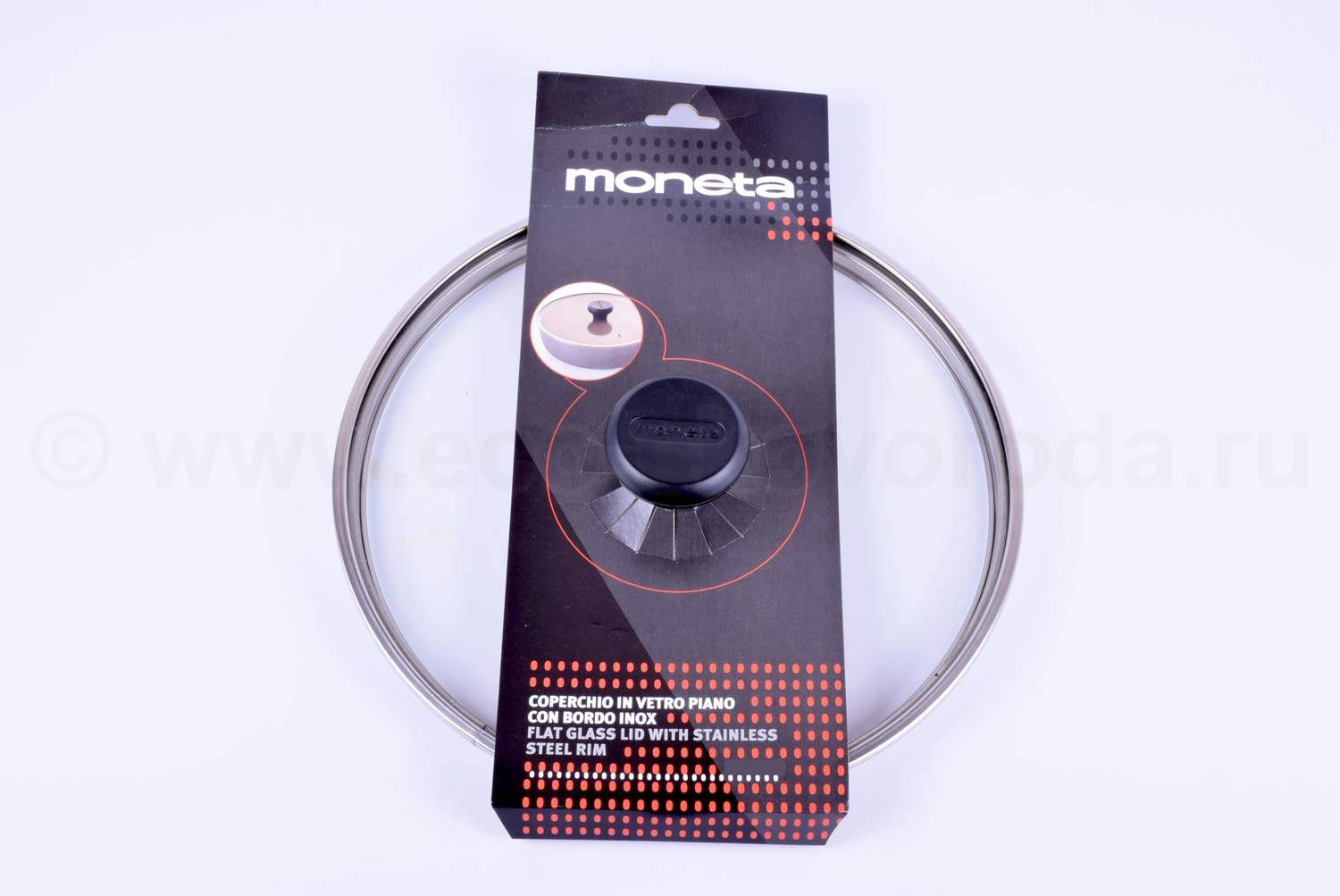 Крышка Moneta выполнена из закаленного жаропрочного стекла, не боится высоких температур. Металлический обод сделан из высококачественной нержавеющей стали - прочный и долговечный. Толщина стекла увеличена, что придает крышке дополнительную прочность.