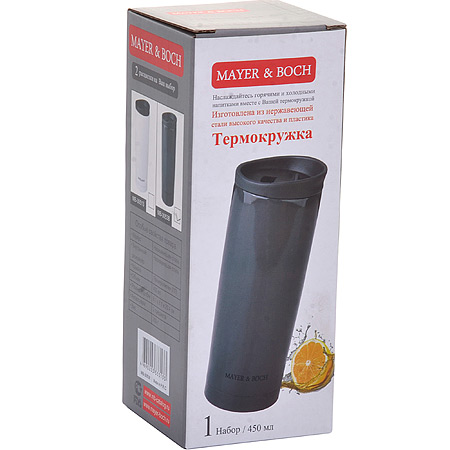 Термокружка 450мл с клапаном для питья MAYER & BOCH Black нержавеющая сталь MAYER & BOCH Термокружки M&B Термокружка MAYER & BOCH изготовлена из нержавеющей стали, не содержащей токсичных веществ. Двойные стенки дольше сохраняют напиток горячим и не обжигают руки. Надежная закручивающаяся крышка с защитой от проливания обеспечит дополнительную безопасность. Крышка оснащена клапаном для питья. Оптимальный объем позволит взять с собой большую порцию