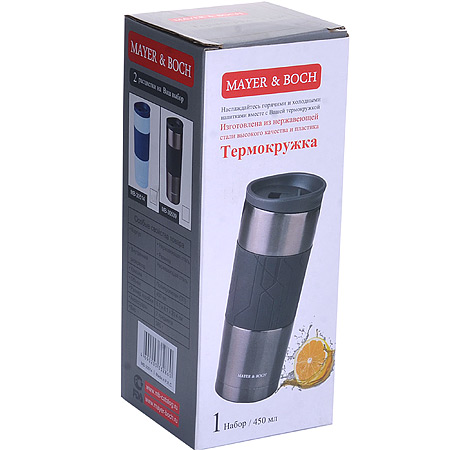 Термокружка MAYER & BOCH изготовлена из нержавеющей стали, не содержащей токсичных веществ. Двойные стенки дольше сохраняют напиток горячим и не обжигают руки. Надежная закручивающаяся крышка с защитой от проливания обеспечит дополнительную безопасность. Крышка оснащена клапаном для питья. Оптимальный объем позволит взять с собой большую порцию горячего кофе или чая. Идеально подходит для холодных напитков. Такая кружка может быть использована во время отдыха, на работе, в путешествии, во время поездок в автомобиле.