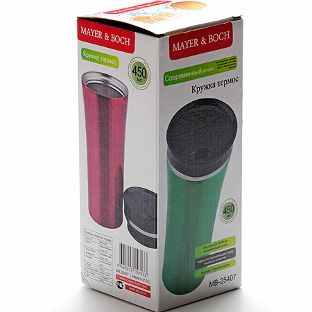 Термокружка «MAYER & BOCH» изготовлена из нержавеющей стали, не содержащей токсичных веществ. Двойные стенки дольше сохраняют напиток горячим и не обжигают руки. Откручивающаяся крышка изготовлена из пластика, кнопка в центре надежно блокирует крышку, предотвращая случайное проливание жидкости. Крышка оснащена клапаном для питья. Оптимальный объем