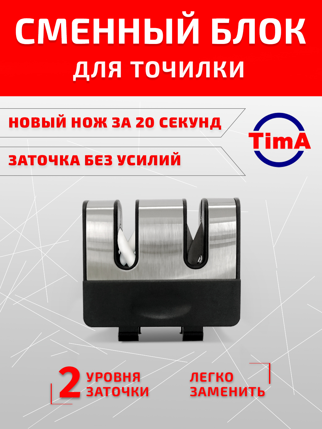 Точильный картридж TIMA металл-керамика - это высококачественный аксессуар для ножеточки, который обеспечивает профессиональную заточку ножей.