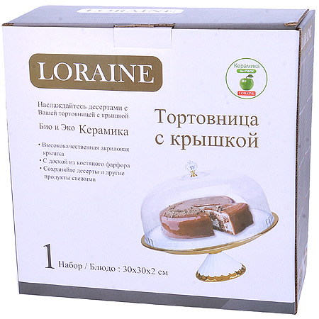 Тортовница 30см LORAINE фарфор с пластиковой крышкой