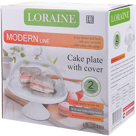 Тортовница LORAINE выполнена из керамики белого цвета с прозрачной акриловой крышкой. Великолепная и изящная модель, которая станет превосходным дополнением, как для вашего повседневного стола, так и праздничной сервировки. Широкое, плоское блюдо позволит красиво подать выпечки, сладости, небольшие закуски и конечно торты. Отличным дополнением