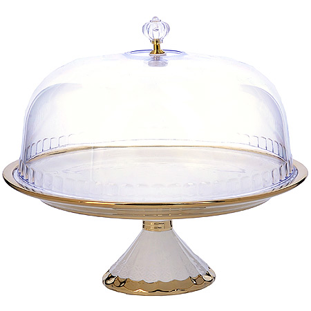 Тортовница на ножке 28см LORAINE фарфор с пластиковой крышкой