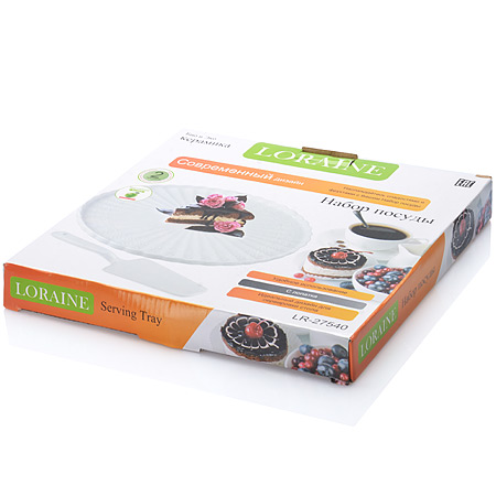 Тортовница с ложкой LORAINE выполнена из керамики высокого качества. Изделие идеально подойдет для сервировки не только торта и десертов, но и различных закусок. Оригинальная и стильная тортовница станет достойным украшением вашего праздничного стола. Легко и быстро моется. Подходит для мытья в посудомоечной машине. Диаметр: 28 х 1,5 см.