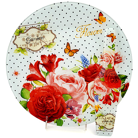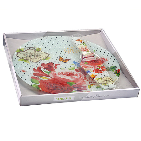 Тортовница 30см LORAINE с лопаткой, букет, стекло