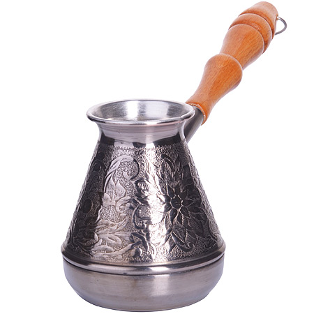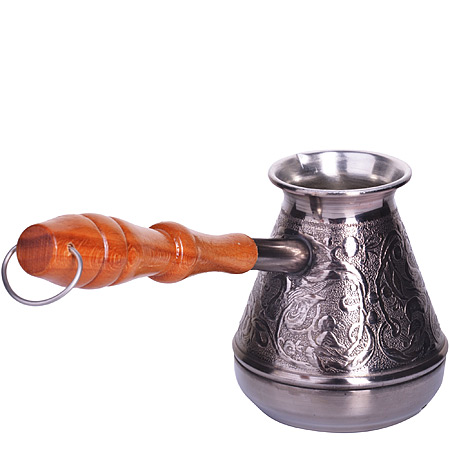 Турка изготовлена из высококачественной меди марки М1М, внешняя поверхность покрыта декоративным черным никелем, внутренняя поверхность – слоем пищевого олова, являющимся безопасным для здоровья. Турка предназначена для приготовления натурального кофе. Медь обладает равномерной теплопроводностью, что позволяет приготовить кофе, отличающийся
