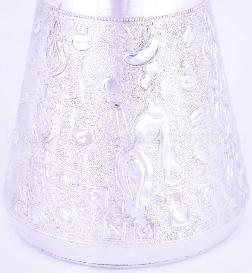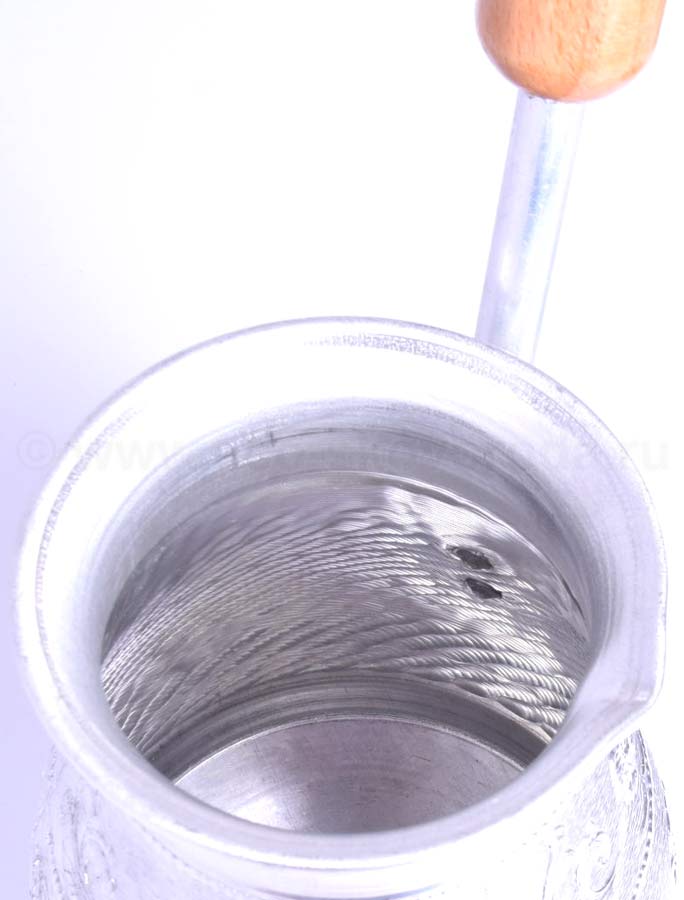 Турка изготовлена из экологически чистого и высококачественного алюминия марки А5М. Такая красивая и удобная турка органично впишется в интерьер Вашей кухни.