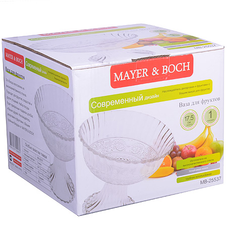 Глубокая ваза для фруктов MAYER & BOCH выполнена из высококачественного стекла. Изделие декорировано изящным резным рельефом и сочетает в себе изысканный дизайн с максимальной функциональностью. Оформление вазы придется по вкусу ценителям классики и изящности. Ваза для фруктов MAYER & BOCH послужит отличным подарком к любому празднику, а также