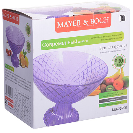 Глубокая ваза для фруктов MAYER & BOCH выполнена из высококачественного стекла. Изделие декорировано изящным резным рельефом и сочетает в себе изысканный дизайн с максимальной функциональностью. Оформление вазы придется по вкусу ценителям классики и изящности. Ваза для фруктов MAYER & BOCH послужит отличным подарком к любому празднику, а также