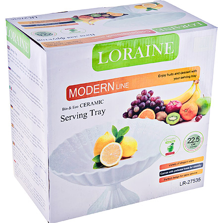 Ваза LORAINE выполнена из керамики высокого качества. Широкая ваза на ножке предназначена для подачи различных сладостей или фруктов. Изящная классическая ваза станет прекрасным дополнением к набору посуды, отлично подойдет для сервировки праздничного стола, а также будет прекрасным подарком. Легко и быстро моется. Подходит для мытья в