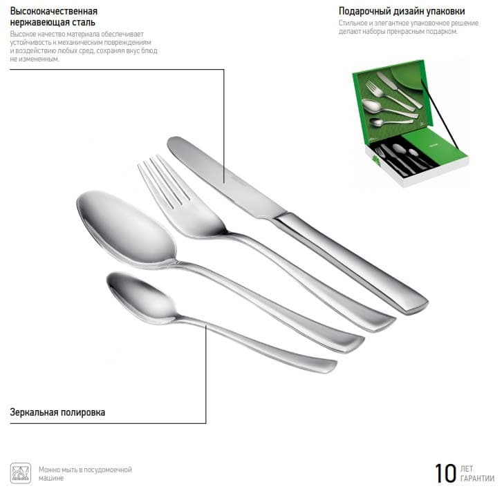 • Столовые приборы изготовлены из высококачественной нержавеющей стали.
