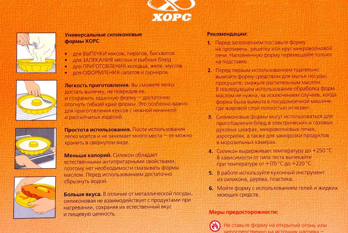 Силиконовые формы ХОРС способны выдержать температуру от -40°C до +250°C. Силикон мягкий и эластичный материал - это очень важно при приготовлении рассыпчатой выпечки. Ведь для того, чтобы достать готовое изделие, достаточно отогнуть гибкий край формы. Это актуально и с формочками для льда, ведь силикон остается мягким и при отрицательной температуре.