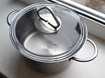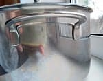 - Если на дне посуды появились светлые пятна или точки, то устраните их специальными моющими средствами, предназначенными для чистки посуды из нержавеющей стали или несколькими каплями лимона или уксуса. Данные пятна появляются из-за наличия минералов, содержащихся в воде, никоим образом не влияют на процесс приготовления пищи и ее качество;