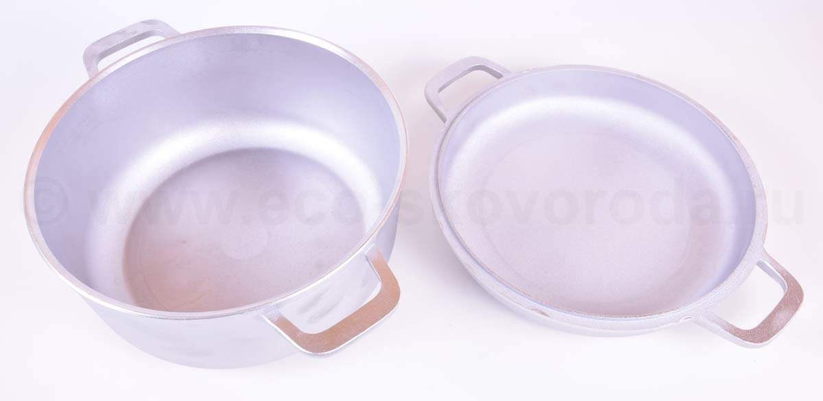 • Две алюминиевые ручки на кастрюлях и утятницах, а так же две на крышке-сковороде;