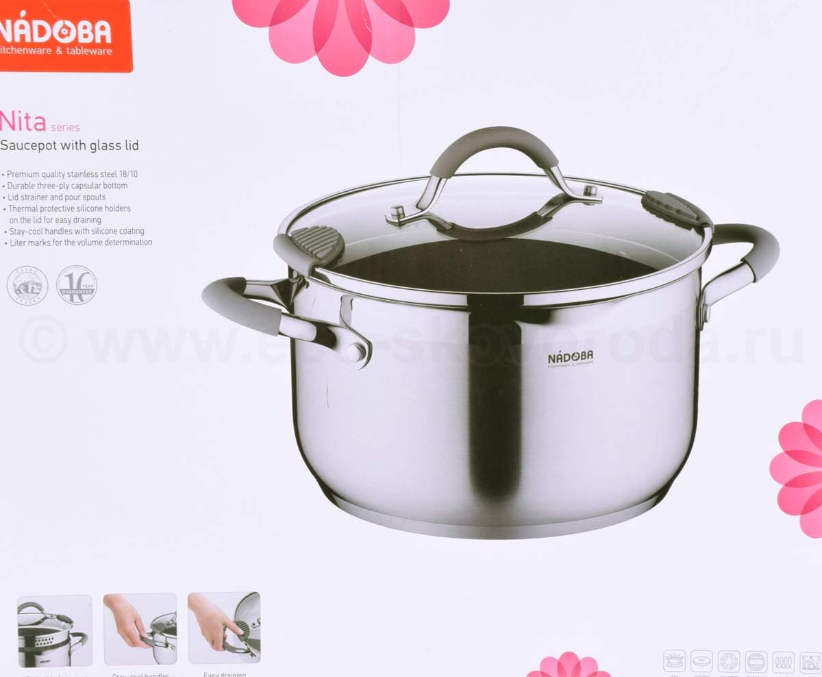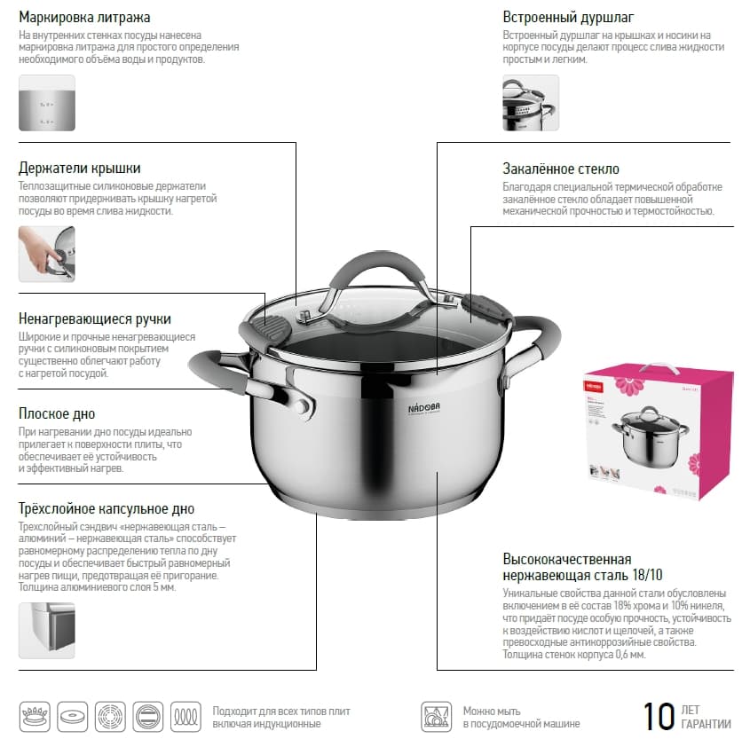 • 10 лет гарантии на посуду из нержавеющей стали серии Nita от NADOBA.