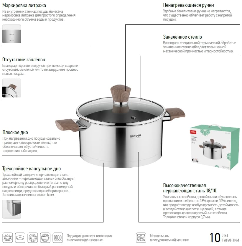 Посуда NADOBA серии Ludva из высококачественной нержавеющей стали 18/10 имеет 10 лет гарантии
