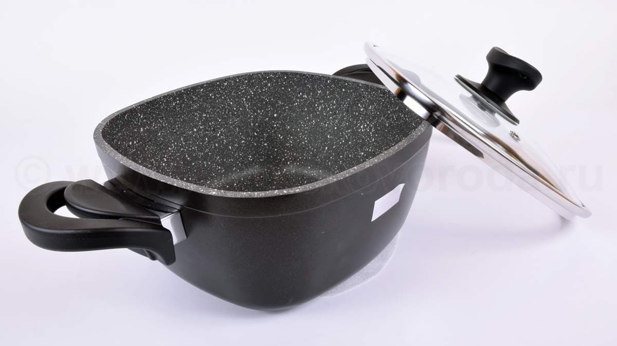 Кастрюля квадратная с крышкой 3,3л Gastronomie Granit изготовлена из литого алюминия с использованием особо прочного антипригарного покрытия QuanTanium. Наличие титана в формуле покрытия обеспечивает долгий срок службы изделия даже при его ежедневном использовании. Покрытие не содержит PFOA, кадмий и свинец и полностью безопасно для здоровья человека.