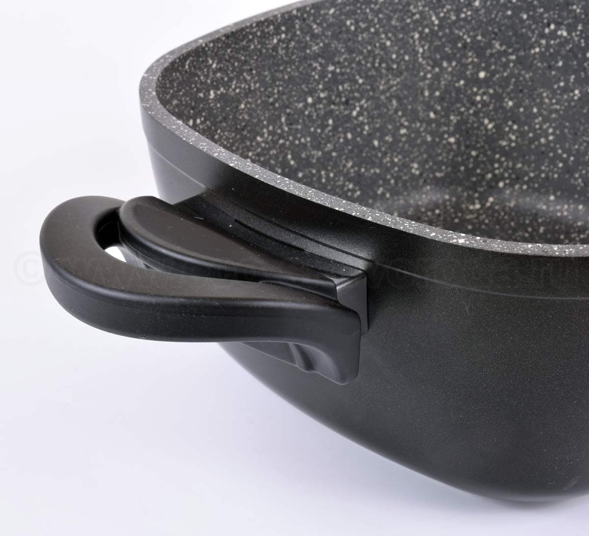 Каменное покрытие является одним из самых прочных и долговечных среди покрытий, не утрачивает свои антипригарные свойства в течение всего срока службы посуды, устойчиво к механическим повреждениям.