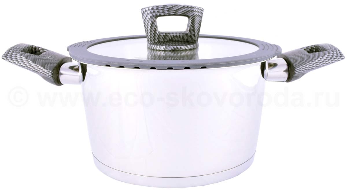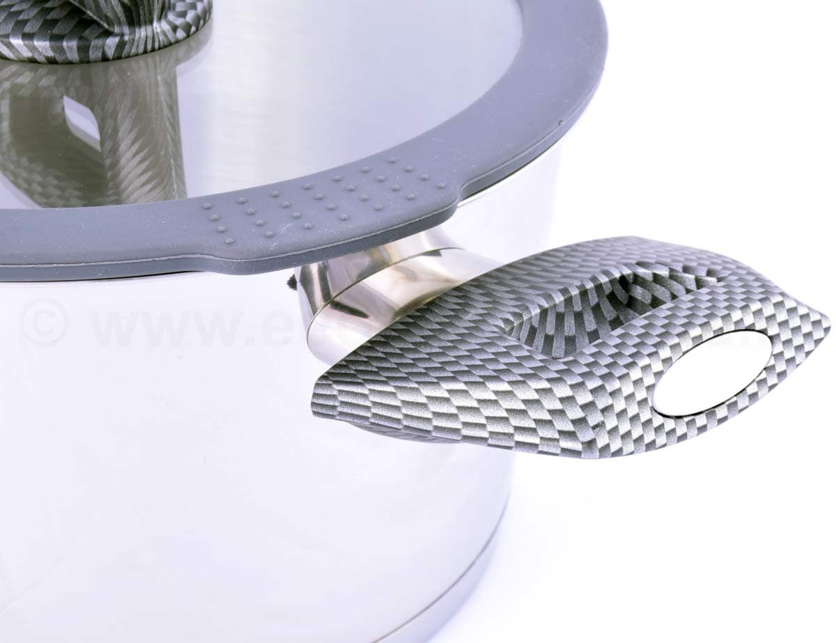 Ручки кастрюли покрыты силиконовыми накладками для защиты рук.