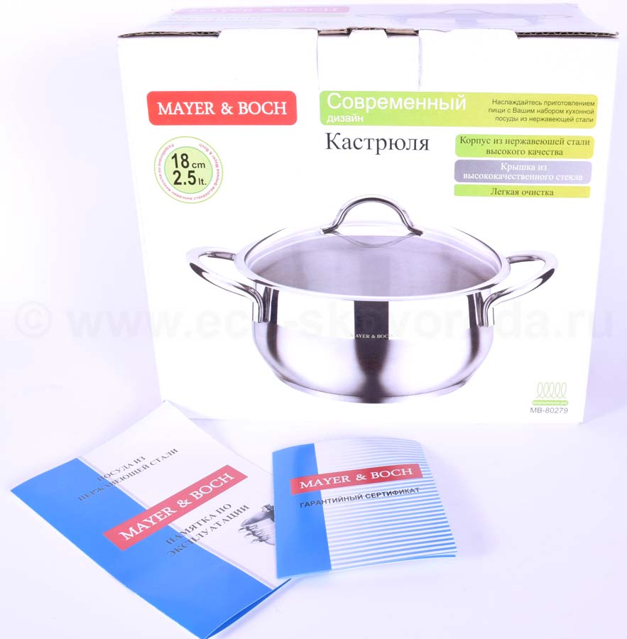 Кастрюля MAYER & BOCH изготовлена из высококачественной нержавеющей стали. Нержавеющая сталь - экологически чистый и долговечный материал, надолго сохраняет свои функциональные свойства.