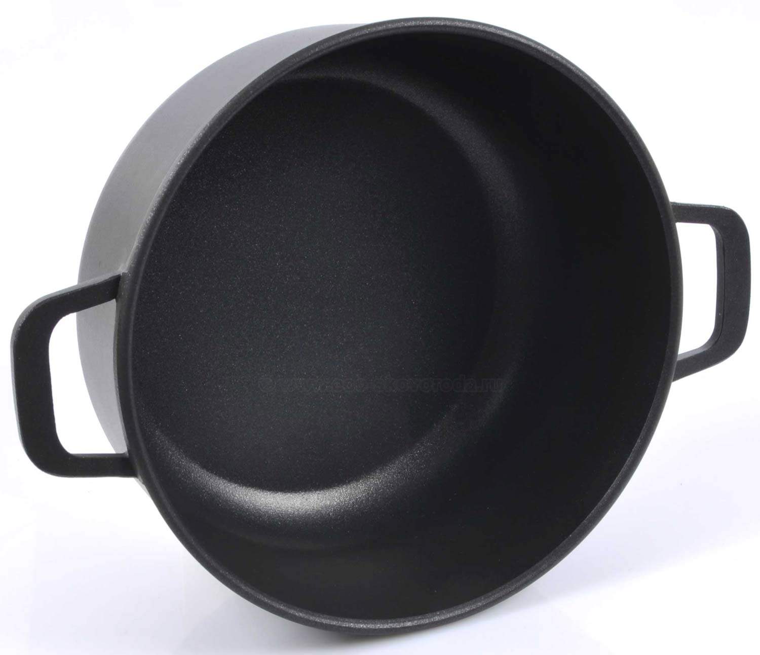 Посуда обладает антипригарным покрытием: пища не будет прилипать, легко сделать золотистую корочку при жарке, легко мыть.